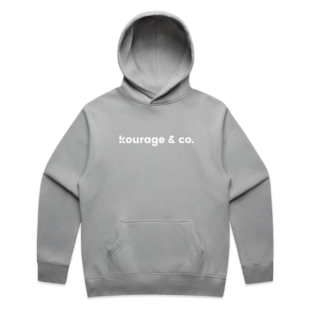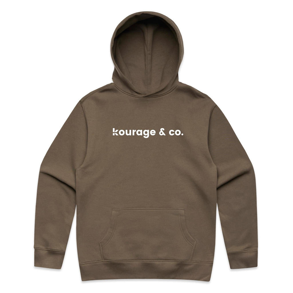 Ribbed sleeve cuffs keep the chill out, and the self-fabric lined hood adds an extra layer of coziness for cooler days. Finished with the bold Kourage & co white print, it’s more than just a hoodie—it’s a statement of strength, style, and purpose.