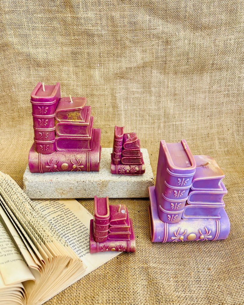 The Quiet Library Stack features a gentle cascading book silhouette that adds subtle character without overpowering your space. It’s the candle that whispers, not shouts.