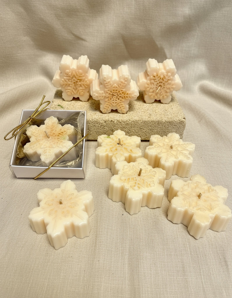 Each Snowflake Candle is hand-poured using soy wax and comes boxed in an 8 x 8 cm gift box with a gold trim, ready to gift — no wrapping required.