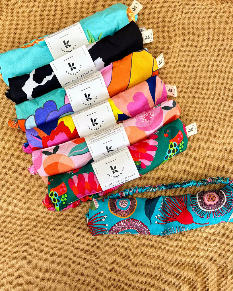 Handmade in Melbourne, each eye pillow is crafted using 100% cotton, Australian wheat and pure lavender, offering a gentle weight and calming aroma that supports both body and mind.